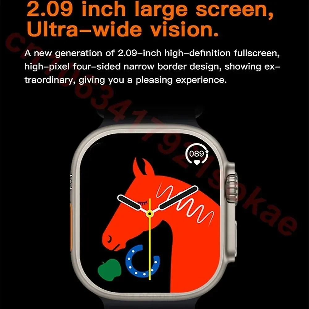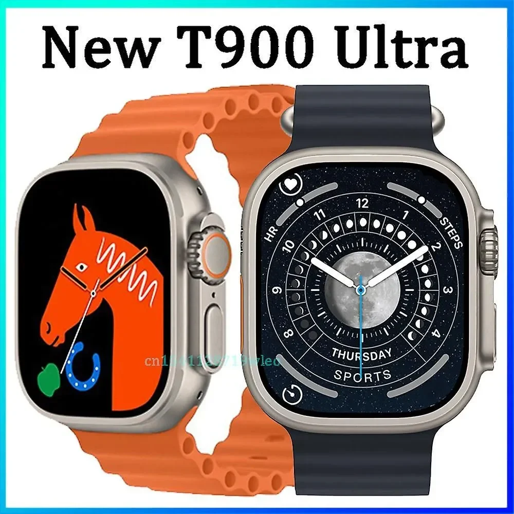 Έξυπνο ρολόι T900 Ultra με τετραγωνική οθόνη υψηλής ευκρίνειας και πλήρεις λειτουργίες κλήσεων και ειδοποιήσεων μέσω Bluetooth. Μπορείς να κάνεις και να δέχεσαι κλήσεις, να ακούς μουσική, να βλέπεις μηνύματα από WhatsApp, Viber, Messenger κ.λπ., καθώς και να παρακολουθείς βήματα, παλμούς, πίεση και καύση θερμίδων.