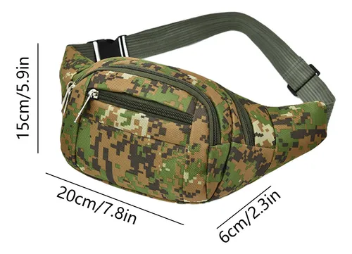 Ανθεκτική τσάντα μέσης τύπου στρατιωτικού (camouflage) – ιδανική για πεζοπορία, ποδηλασία, ψάρεμα, ταξίδια ή καθημερινή χρήση. Με πολλαπλές τσέπες με φερμουάρ, επιτρέπει την άνετη οργάνωση κινητού, κλειδιών, πορτοφολιού ή εργαλείων, ενώ ο ρυθμιζόμενος ιμάντας επιτρέπει να φοριέται στη μέση ή χιαστί στο στήθος.
