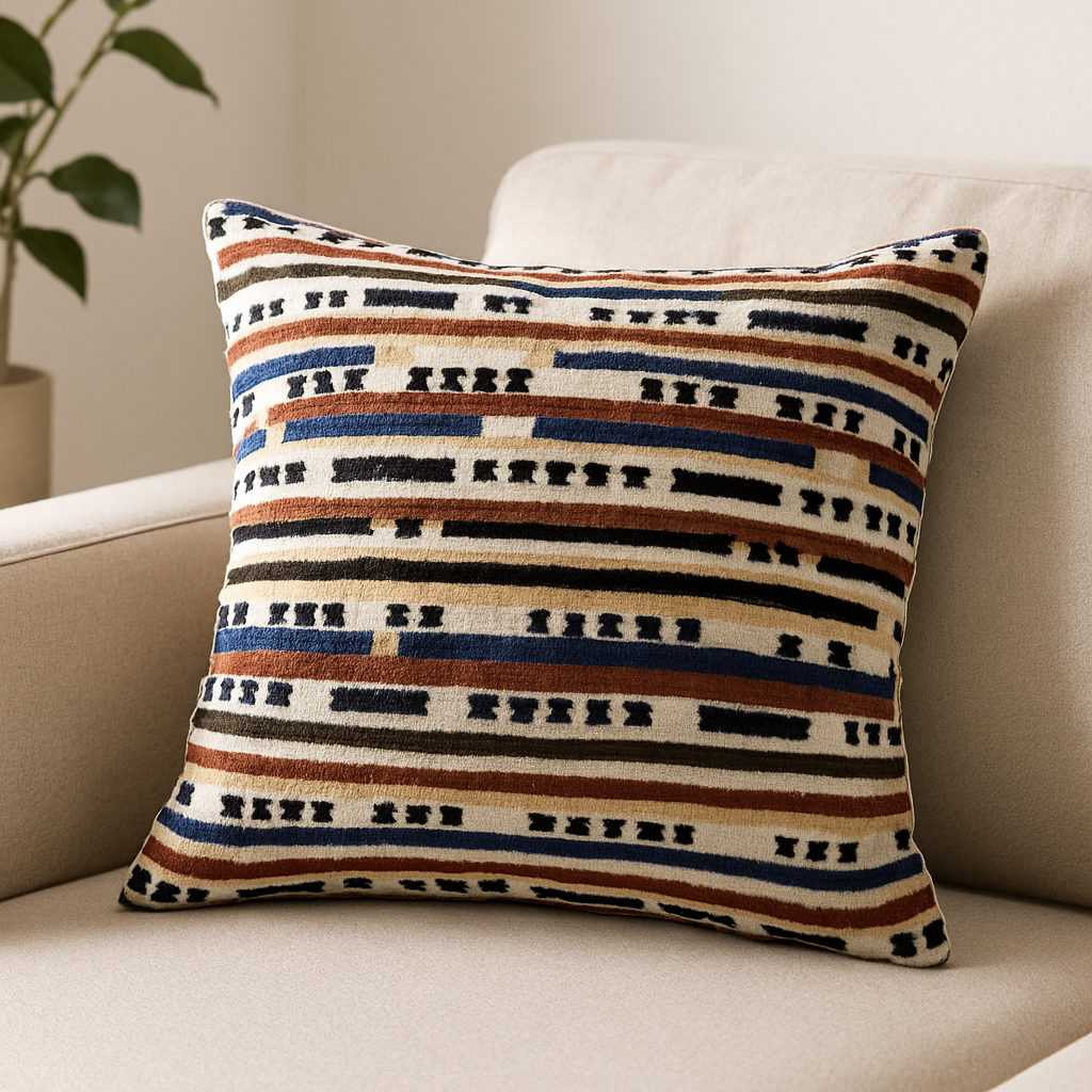 Διακοσμητική μαξιλαροθήκη με μοντέρνο υφαντό μοτίβο με διάφορα χρώματα. Η υφή της είναι απαλή και ανθεκτική, ιδανική για καναπέ, πολυθρόνα ή κρεβάτι. Προσθέτει χρώμα και χαρακτήρα στον χώρο ενώ παραμένει εύκολα συνδυάσιμη με διαφορετικά στυλ διακόσμησης. Διαθέτει φερμουάρ για εύκολη αφαίρεση και πλύσιμο.