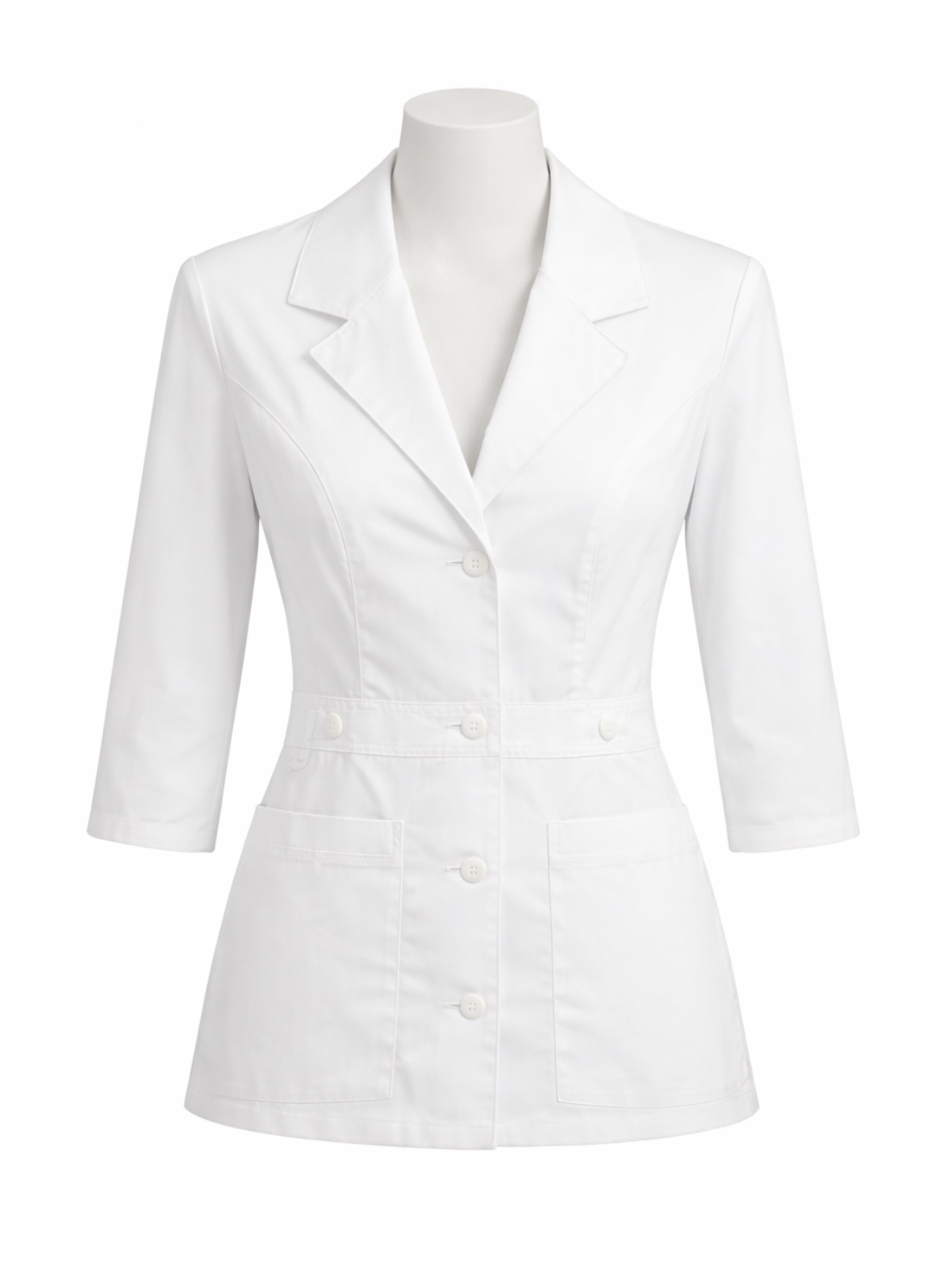 Κομψή και πρακτική γυναικεία ιατρική ρόμπα σε λευκό χρώμα, ιδανική για επαγγελματίες υγείας όπως νοσηλεύτριες, ιατρούς, φαρμακοποιούς και προσωπικό εργαστηρίων. Διαθέτει μεσάτη γραμμή που αγκαλιάζει το σώμα, προσφέροντας άνεση και επαγγελματική εμφάνιση καθ’ όλη τη διάρκεια της ημέρας. Το ύφασμα είναι ανθεκτικό και εύκολο στο σιδέρωμα, κατάλληλο για συχνή χρήση.