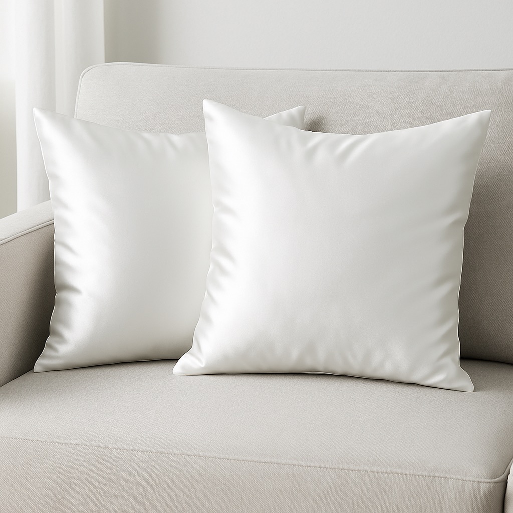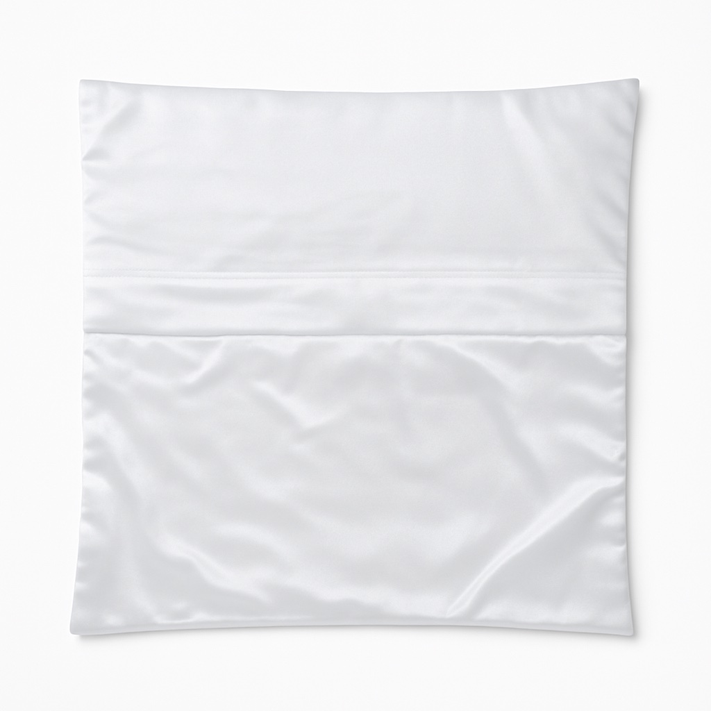 Λευκή σατέν διακοσμητική μαξιλαροθήκη, τετράγωνη, ιδανική για καναπέ ή πολυθρόνα. Με μεταξένια λάμψη και απαλή υφή, δίνει μια αίσθηση πολυτέλειας και φρεσκάδας στον χώρο. Αναβαθμίζει εύκολα τη διακόσμηση του σαλονιού, προσθέτοντας κομψότητα σε μίνιμαλ ή κλασικό στυλ.