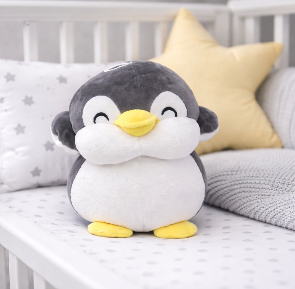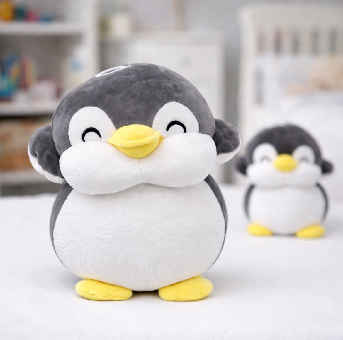 Χαριτωμένο λούτρινο πιγκουινάκι με απαλή υφή, ιδανικό για αγκαλιές και παιχνίδι. Διαθέτει γλυκό χαμόγελο, μαλακό γέμισμα και σταθερή βάση ώστε να στέκεται όρθιο. Κατάλληλο για παιδιά αλλά και ως διακοσμητικό για παιδικό δωμάτιο ή βιτρίνα.