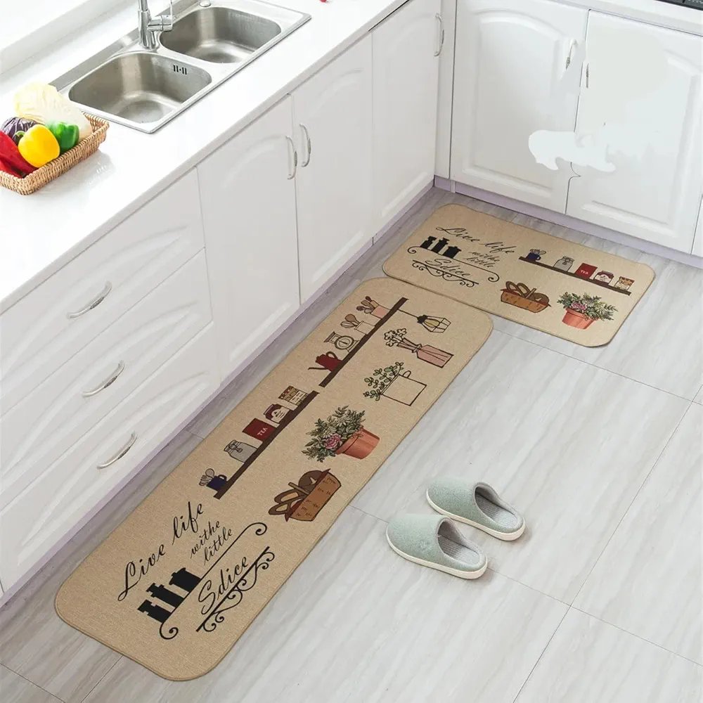 Δώστε ζεστασιά και στυλ στην κουζίνα σας με αυτό το όμορφο πατάκι, ιδανικό για μπροστά από τον νεροχύτη και τον πάγκο εργασίας. Με μοντέρνο σχέδιο και φράση που δίνει χαρακτήρα στον χώρο, προσφέρει άνεση στα πόδια και προστασία στο πάτωμα. Η αντιολισθητική βάση εξασφαλίζει σταθερότητα, ενώ το ύφασμα είναι ανθεκτικό και εύκολο στο καθάρισμα, κατάλληλο για καθημερινή χρήση.