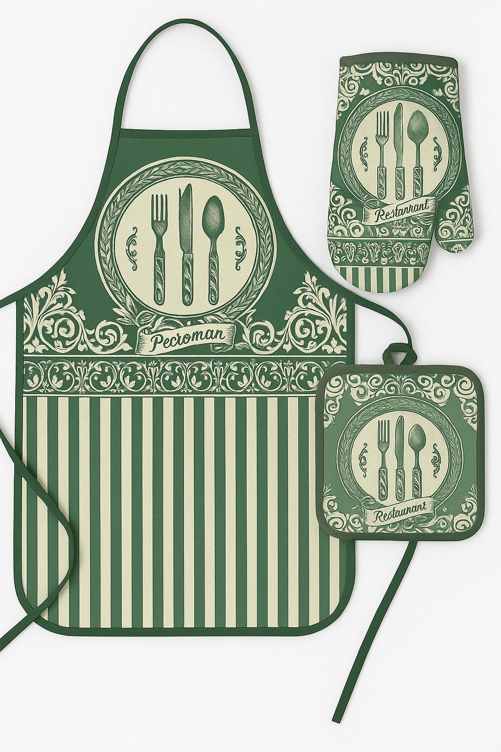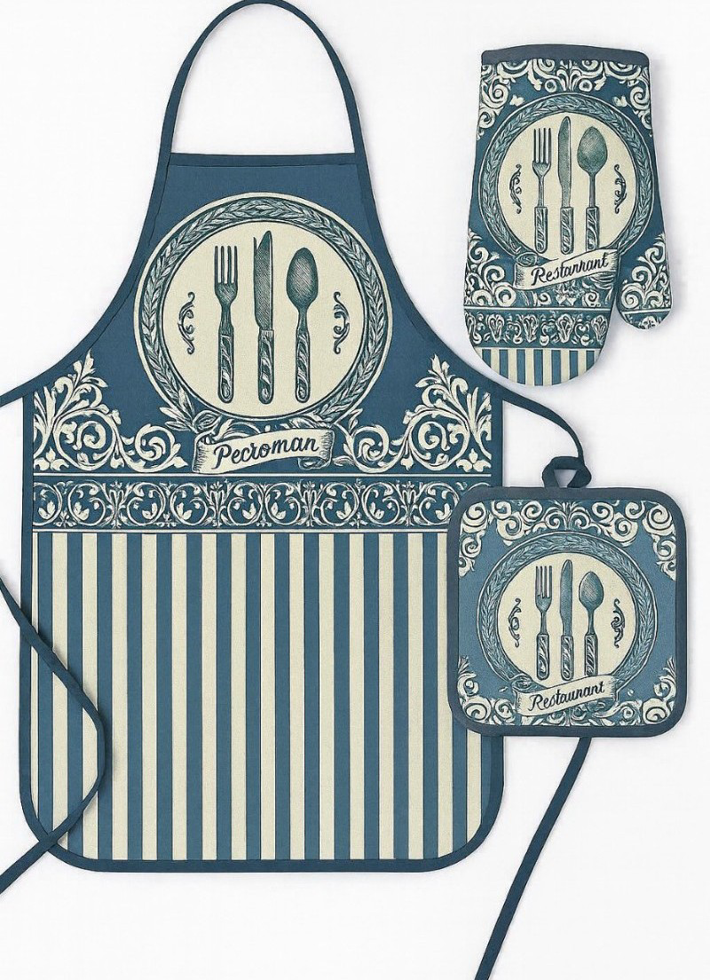 • Περιέχει: Ποδιά, Γάντι, Πιάστρα