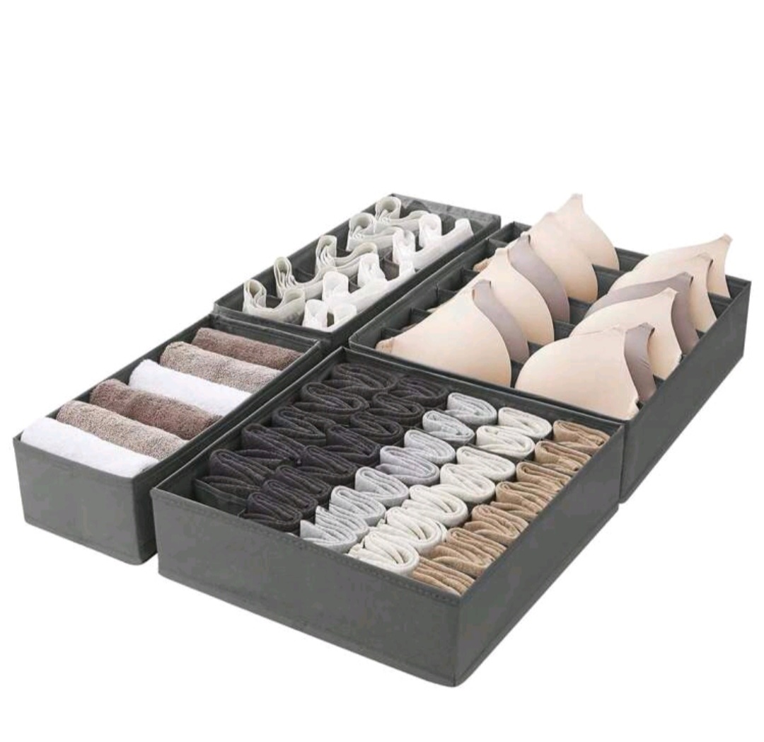 Σετ υφασμάτινων θηκών οργάνωσης συρταριών – η πιο πρακτική λύση για τακτοποιημένα εσώρουχα, κάλτσες, αξεσουάρ ή καλλυντικά. Τοποθετούνται εύκολα σε οποιοδήποτε συρτάρι και χωρίζουν τα αντικείμενα σε ξεχωριστές θήκες, ώστε να βρίσκεις γρήγορα και εύκολα ό,τι χρειάζεσαι χωρίς ακαταστασία.