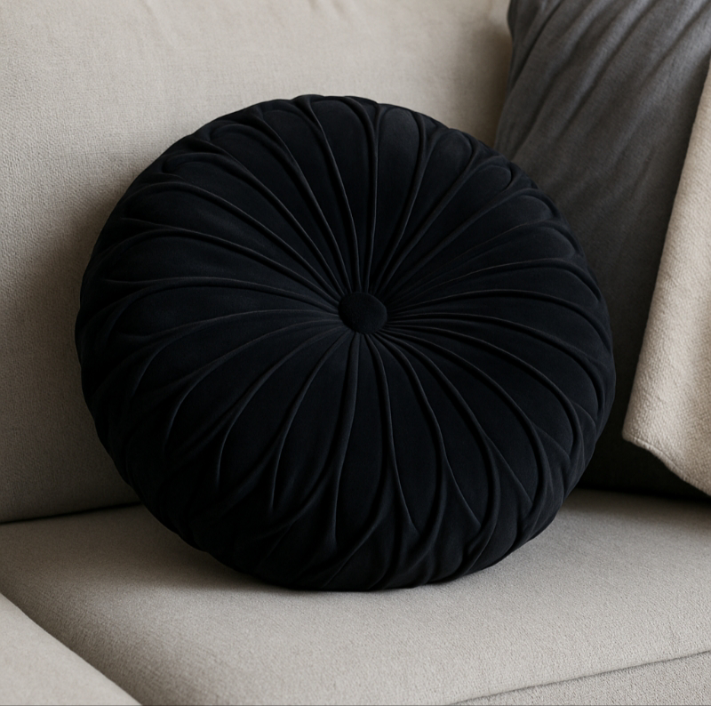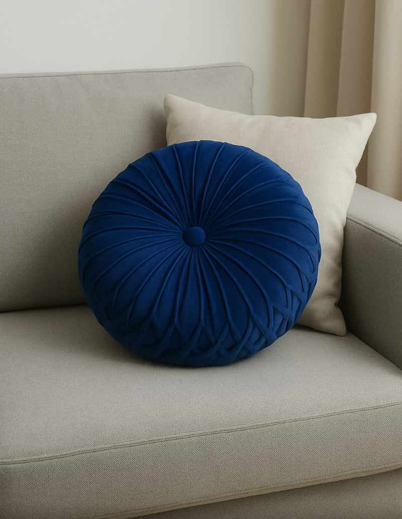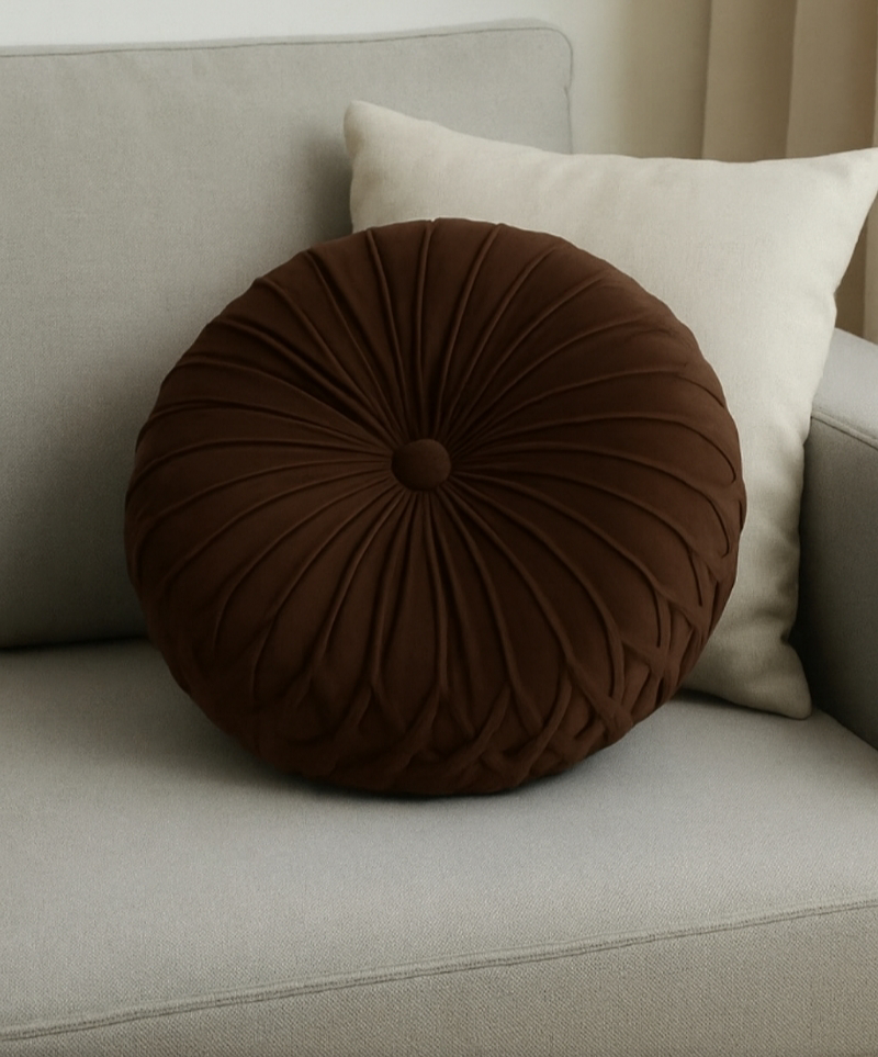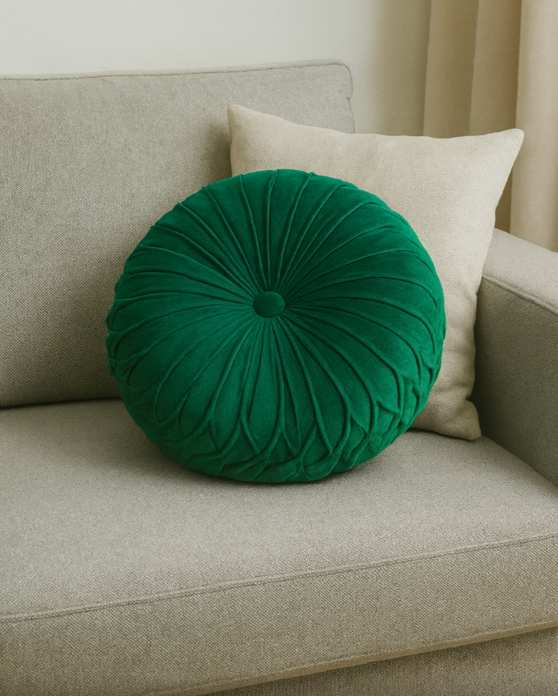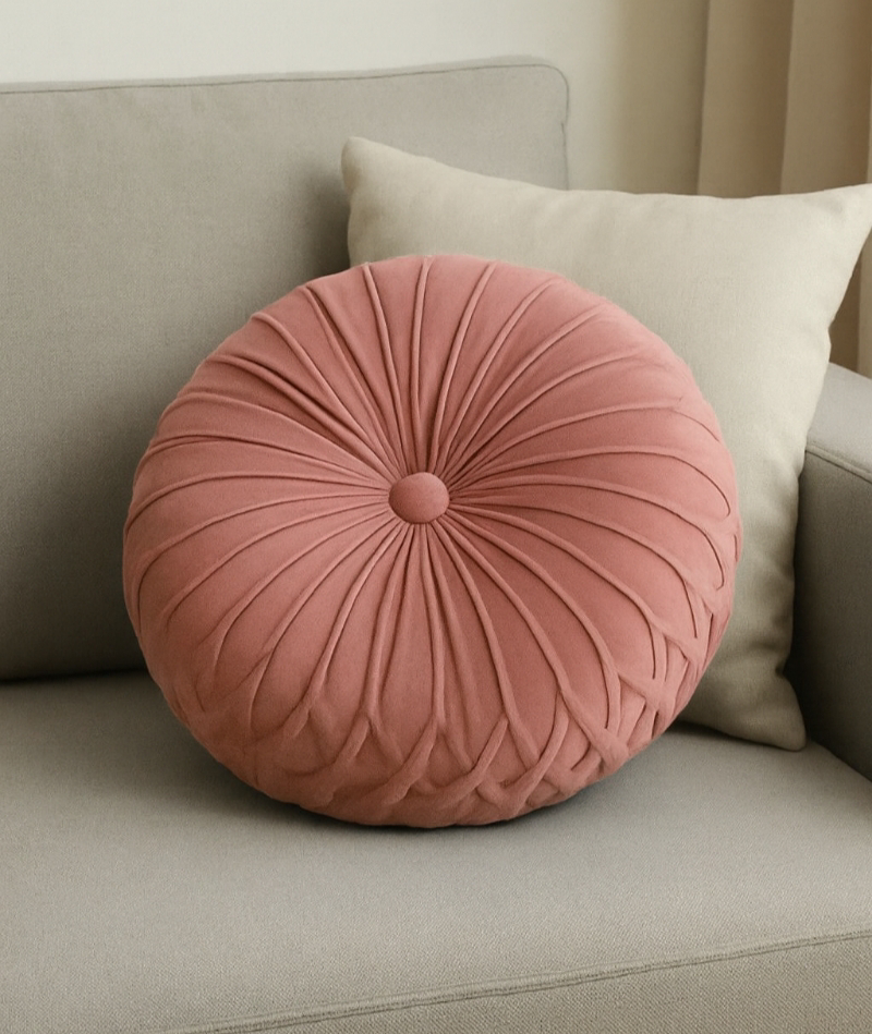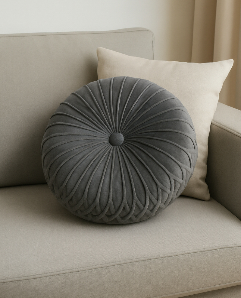 Ένα εντυπωσιακό στρογγυλό βελούδινο μαξιλάρι που δίνει άμεσα στυλ και πολυτέλεια σε κάθε καναπέ. Με υπέροχη βελουτέ υφή και λεπτομερή ραφή που δημιουργεί πλούσια πτύχωση, προσφέρει άνεση αλλά και διακοσμητική αξία στον χώρο.