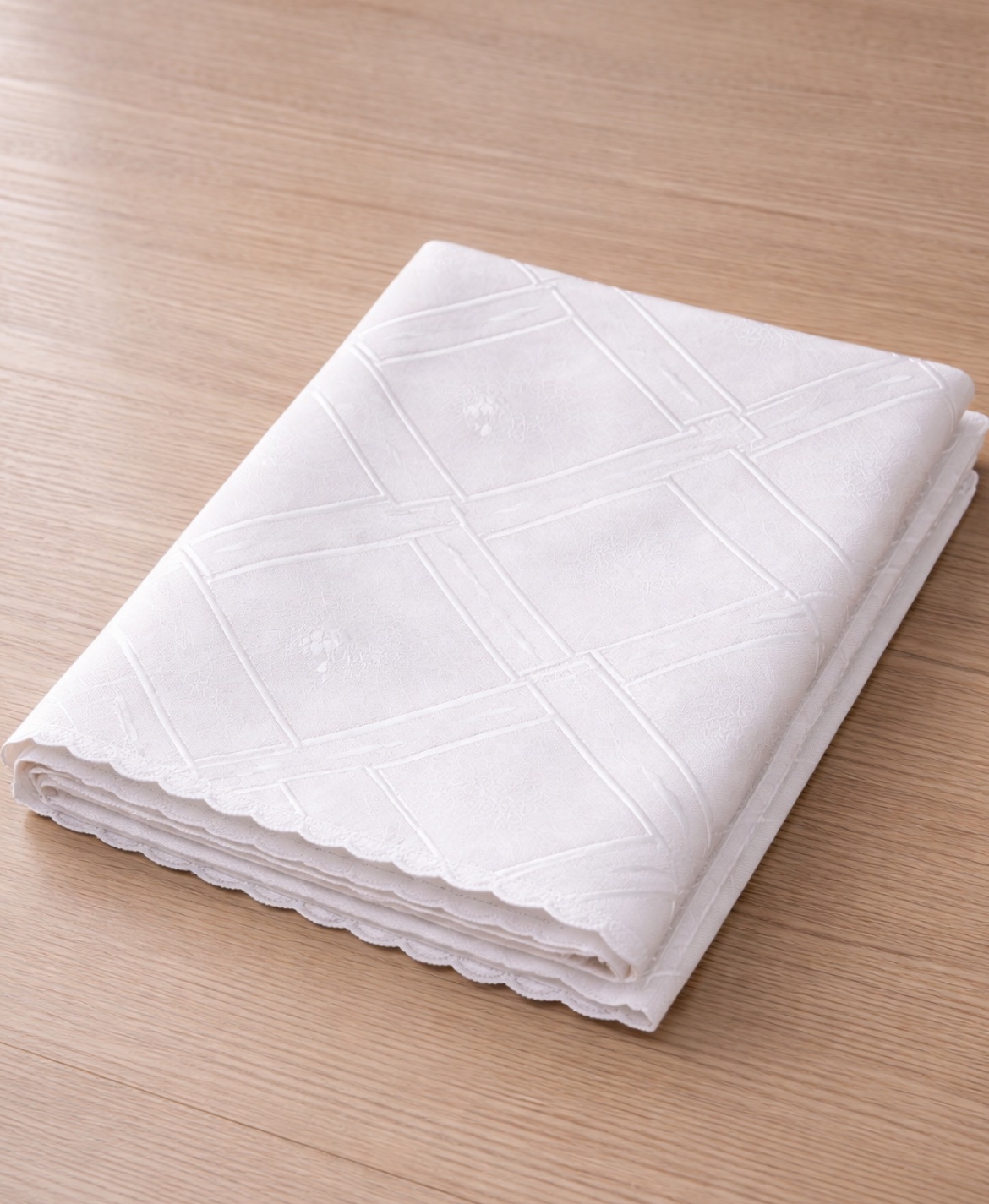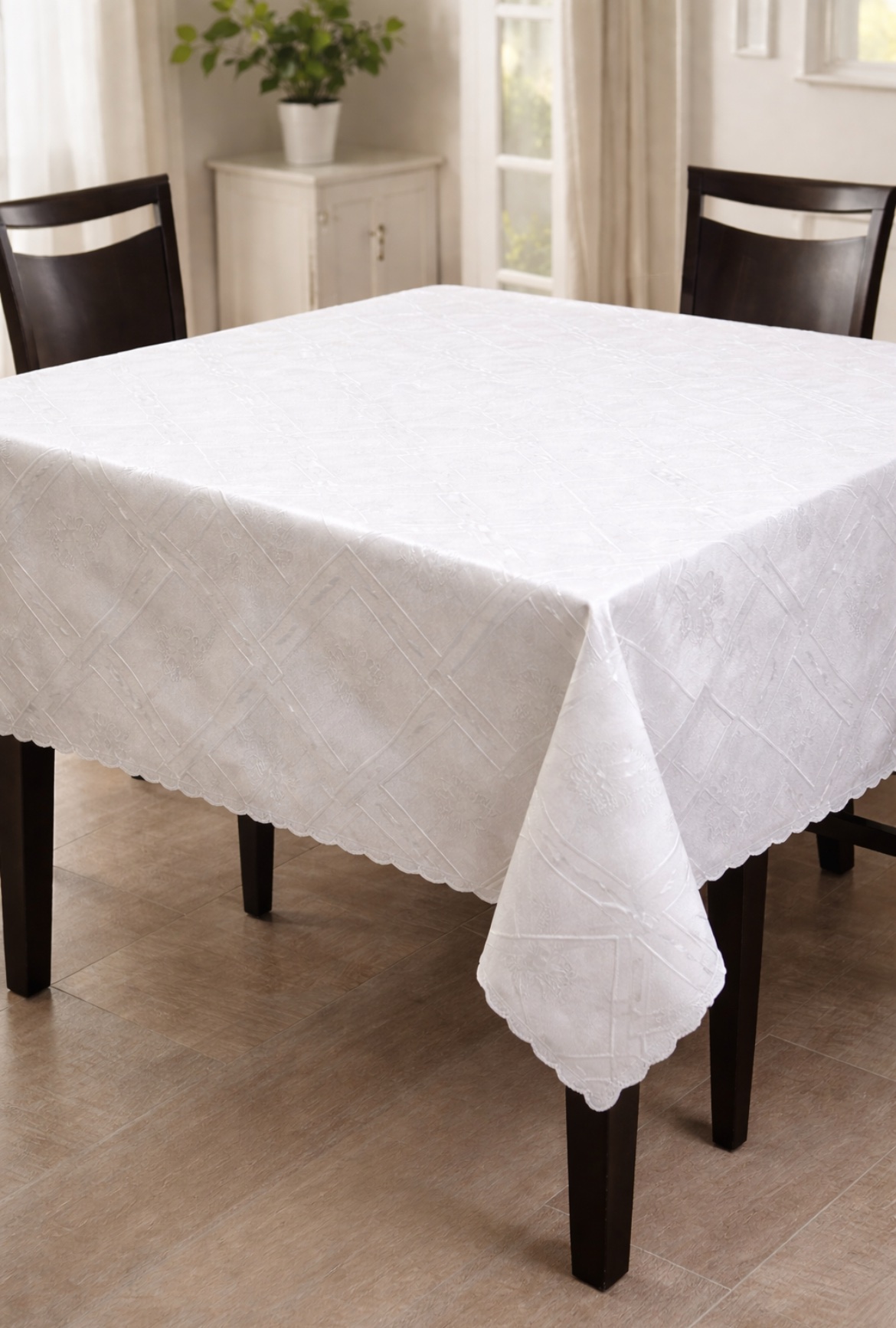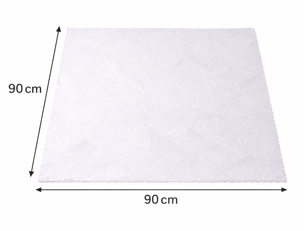 Κλασικό τετράγωνο λευκό τραπεζομάντηλο με διακριτικό ανάγλυφο σχέδιο, ιδανικό για καθημερινή χρήση αλλά και για πιο επίσημα τραπέζια. Προσφέρει καθαρή και κομψή εμφάνιση, ενώ το ύφασμα του είναι ανθεκτικό και εύκολο στη φροντίδα.